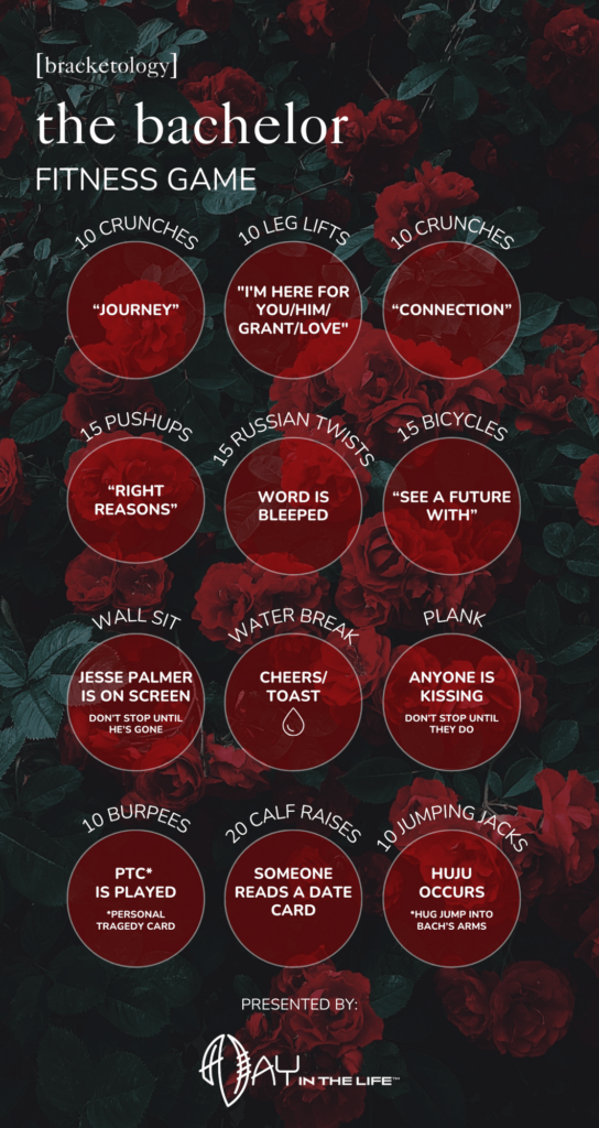 Every juicy moment, awkward kiss, and shocking twist on The Bachelor comes with a corresponding exercise—so you’ll be squatting, planking, and crunching your way through the season, all while keeping up with the love (and chaos) on-screen.